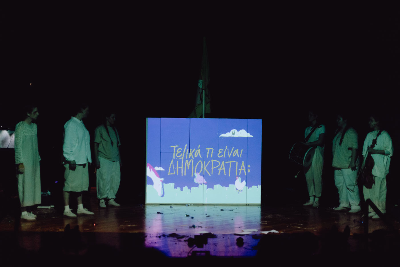 Η παράσταση ανοίγει με τρόπο προσιτό έναν διάλογο για τη δημοκρατία, την ισότητα και τη συλλογικότητα.