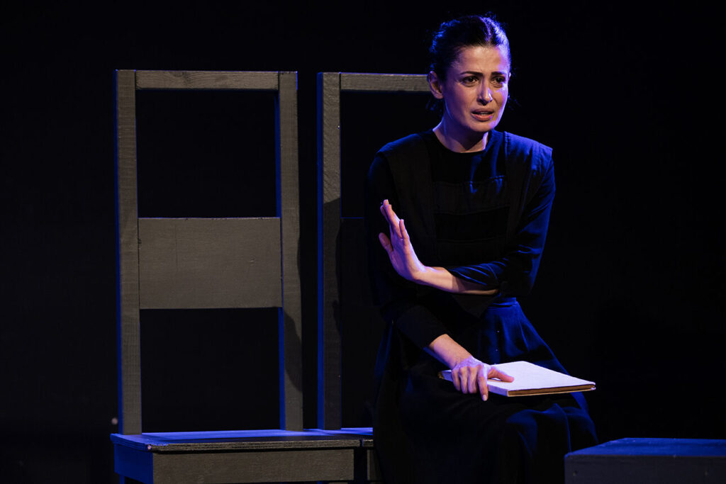 Ο Σωτήρης Χατζάκης έχει το ταλέντο να δημιουργήσει – σκηνοθετήσει, με λιτότητα, την κατάλληλη ατμόσφαιρα και καθοδηγεί την Παπά άλλοτε να στάζει μέλι, άλλοτε να τρέμει από θυμό ή φόβο, άλλοτε να γίνεται λαβωμένο ζώο και άλλοτε να μοιάζει με τις τραγωδούς σε αρχαίο δράμα.